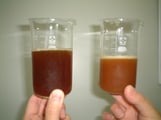 右側の色が薄く見えるのは、たくさんの酵母が浮遊しているからです。