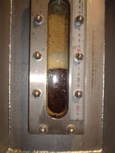 発酵中の赤味噌ラガーをタンクの小窓から確認したところです。