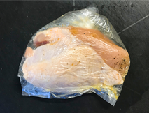 ❷Aの材料を袋に入れて、鶏胸肉を漬け込みます。